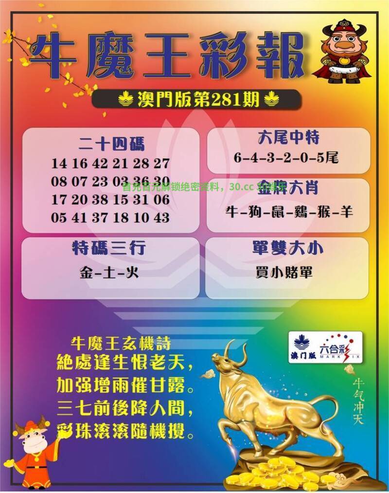 281期:七肖中特【牛鼠狗羊猪马猴】开:羊47中