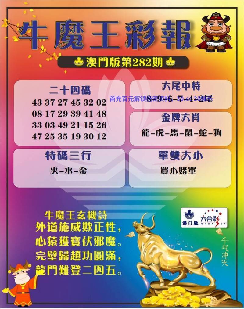 282期:【绝杀三肖】〖鼠牛蛇〗开:牛41错